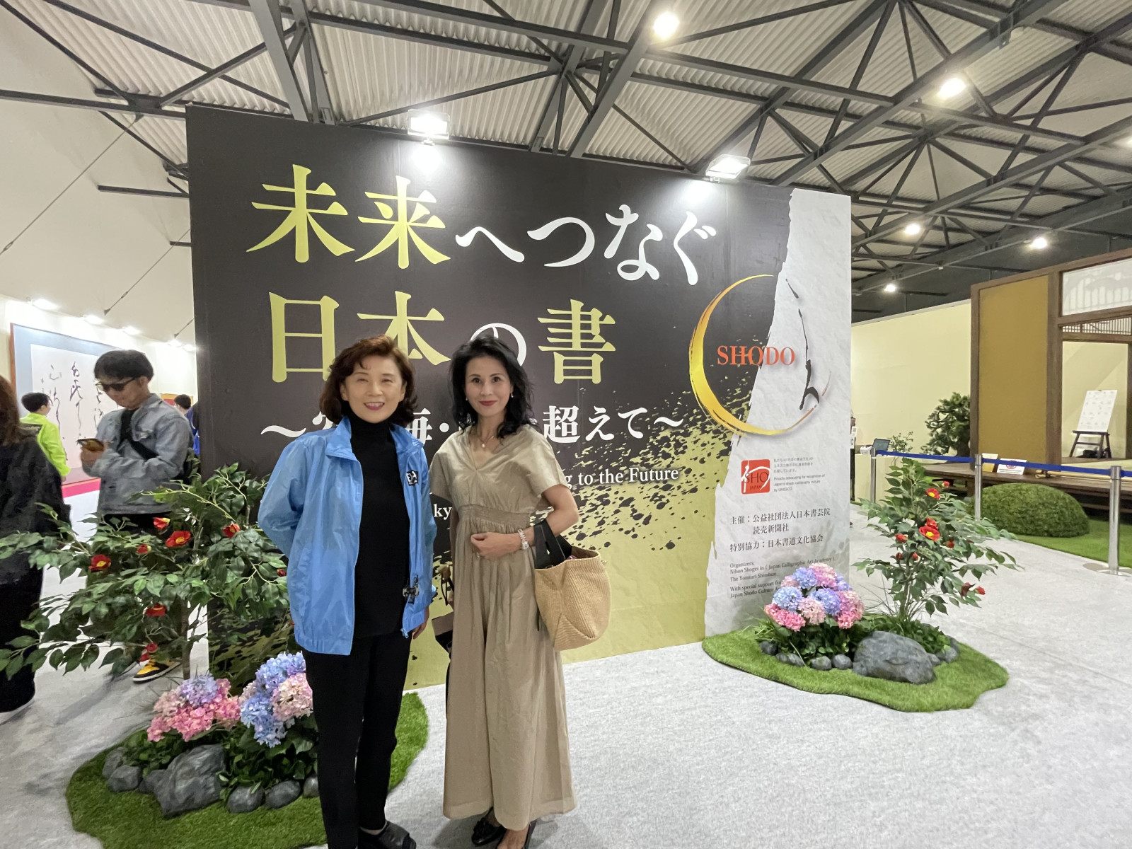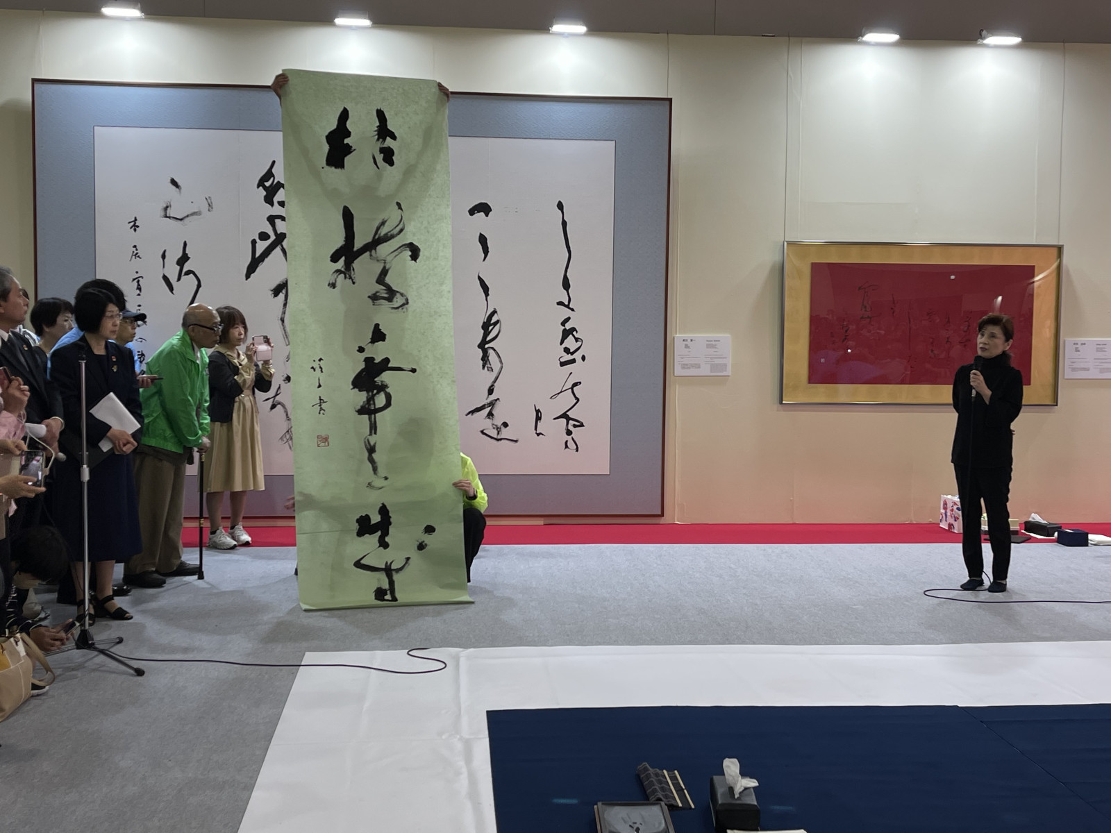 大阪•関西万博「未来へつなぐ日本の書」へ参加いたしました。 2025/05/09 大阪•関西万博「EXPOメッセ WASSE」で開催している「未来へつなぐ日本の書」にて、 師である土橋靖子先生の席上揮毫に参加してきました。